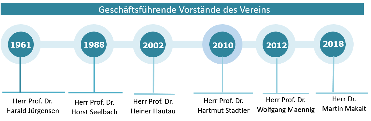 Im Jahr 2010, nach der Emeritierung von Prof. Dr. Hautau, wurde Herr Prof. Dr. Hartmut Stadtler zum Geschäftsführenden Vorstand der Gesellschaft bestellt. Von 2012 bis 2018 war Herr Prof. Dr. Wolfgang Maennig Vorstandsvorsitzender der Gesellschaft. Auf der Mitgliederversammlung der Gesellschaft für Verkehr und Logistik e.V. am 31. Mai 2018 wurden die Umbenennung des Vereins in FILog - Gesellschaft für Innovation in Logistik und Verkehr e.V. sowie eine Erweiterung der Führungsriege beschlossen, um der Bedeutung von Innovationen in Logistik und Verkehr sowie dem Zuwachs der Mitglieder des Vereins Rechnung zu tragen. Dr. Martin Makait wurde zum Vorsitzenden des Vorstandes gewählt. Als weitere Mitglieder des Vorstandes wurden die Herren Prof. Dr. Wolfgang Maennig (stellvertr. Vorsitzender), Dr. Joachim Matthies und Dr. Jürgen Glaser berufen. |